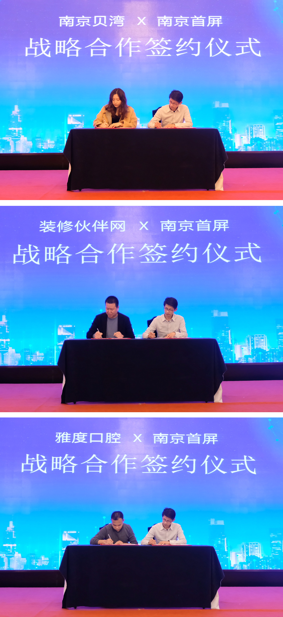 作為有著21年企業(yè)服務(wù)經(jīng)驗(yàn)的百度,始終將企業(yè)的發(fā)展放在首位,并通過智能營銷解決方案,幫助合作伙伴實(shí)現(xiàn)企業(yè)的創(chuàng)新營銷。會(huì)上,首屏百度營銷(南京)服務(wù)中心分別與南京貝灣、裝修伙伴網(wǎng)、雅度口腔簽訂戰(zhàn)略合作協(xié)議,為企業(yè)提供豐富的產(chǎn)品資源及優(yōu)質(zhì)的服務(wù)。
